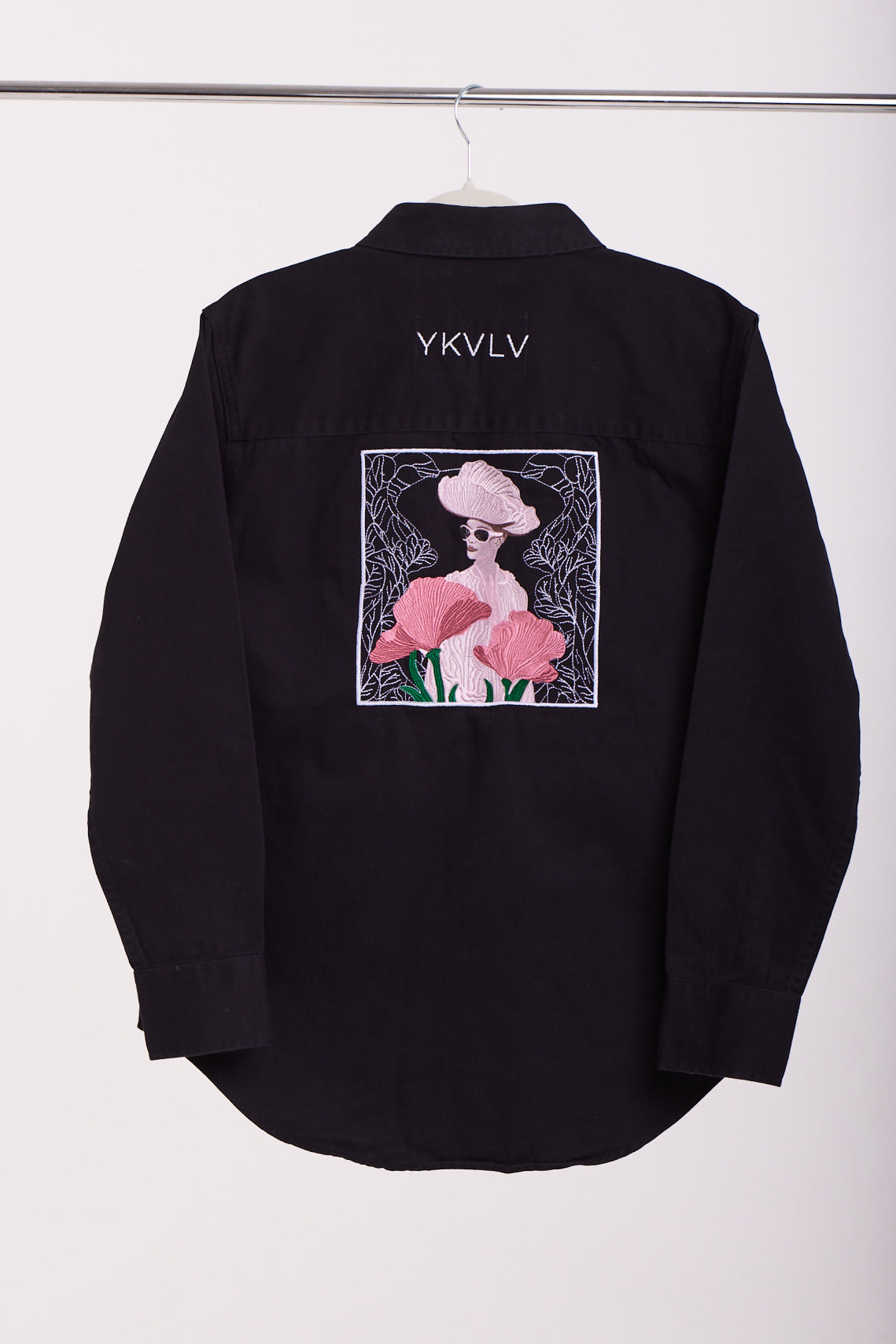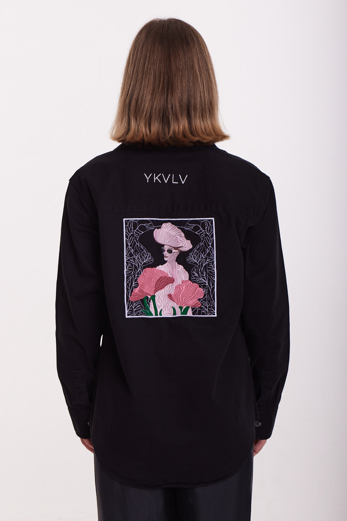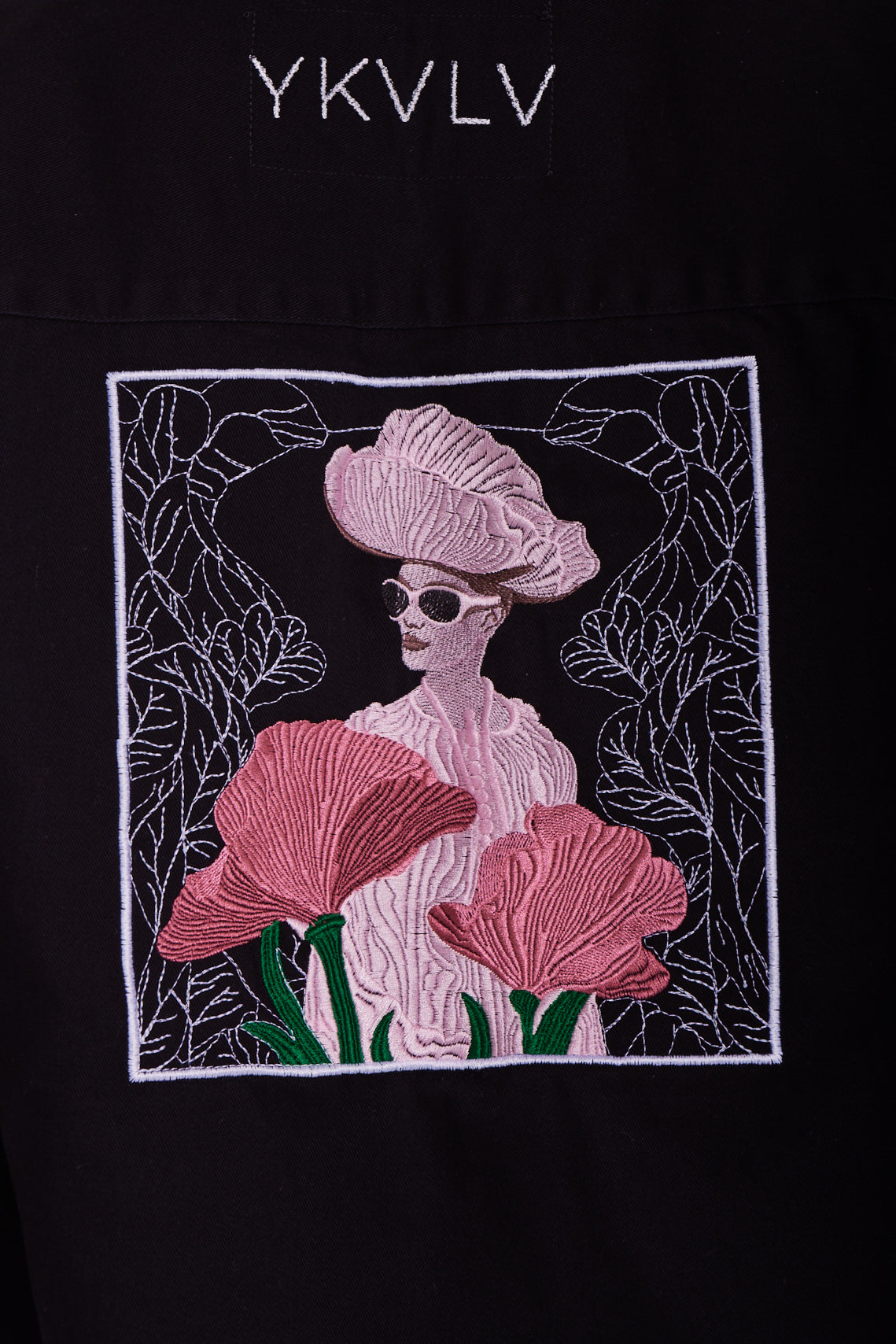 This statement black shirt features a meticulously crafted high-quality embroidery, blending AI-generated Art Nouveau aesthetics with modern sophistication. A fusion of technology and timeless design, it’s a wearable piece of art for those who embrace bold creativity.